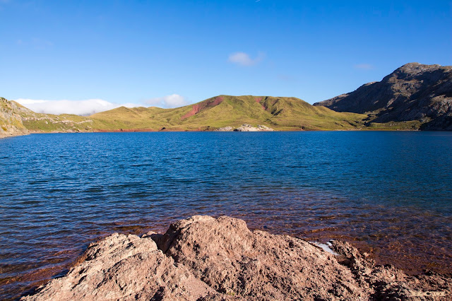 Pero la cabra siempre tira al monte, y voy siguiendo la orilla hasta salir al GR-11, por el que bordeo el ibon por su orilla sur.